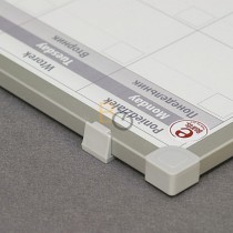 Charakterystyka: Powierzchnia biała suchościeralna lakierowana o właściwościach magnetycznych, posiadająca stały nadruk planera miesięcznego. Rama aluminiowa Offi ceBoard anodowana na kolor srebrny, wykończona plastikowymi narożnikami. Produkt wyposażono w wygodną półkę na markery o długości 30 cm.