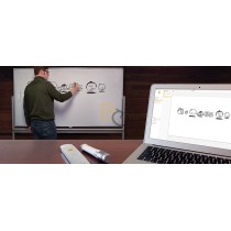 • półka interaktywna zapewniająca szybki dostęp do czterech kolorów pisaka, gąbki oraz wskaźnika teleskopowego, który aktywuje funkcję pisaka laserowego w oprogramowaniu Flow!Work Pro