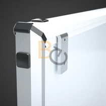 Tablica biała suchościeralna o powierzchni magnetycznej ceramicznej. Rama wykonana jest z profilu aluminiowego w kolorze srebrnym, wykończona eleganckimi, popielatymi narożnikami.