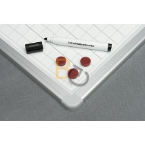Tablica biała suchościeralna magnetyczna ceramiczna. Rama wykonana z profilu aluminiowego anodowana na kolor srebrny, wykończona eleganckimi popielatymi narożnikami.